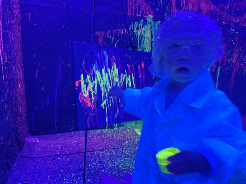 In our glow-in-the-dark paint rooms you can create a masterpiece on a canvas, the walls or each other. You are welcome to get as messy as you’d like and have a lot of fun!
